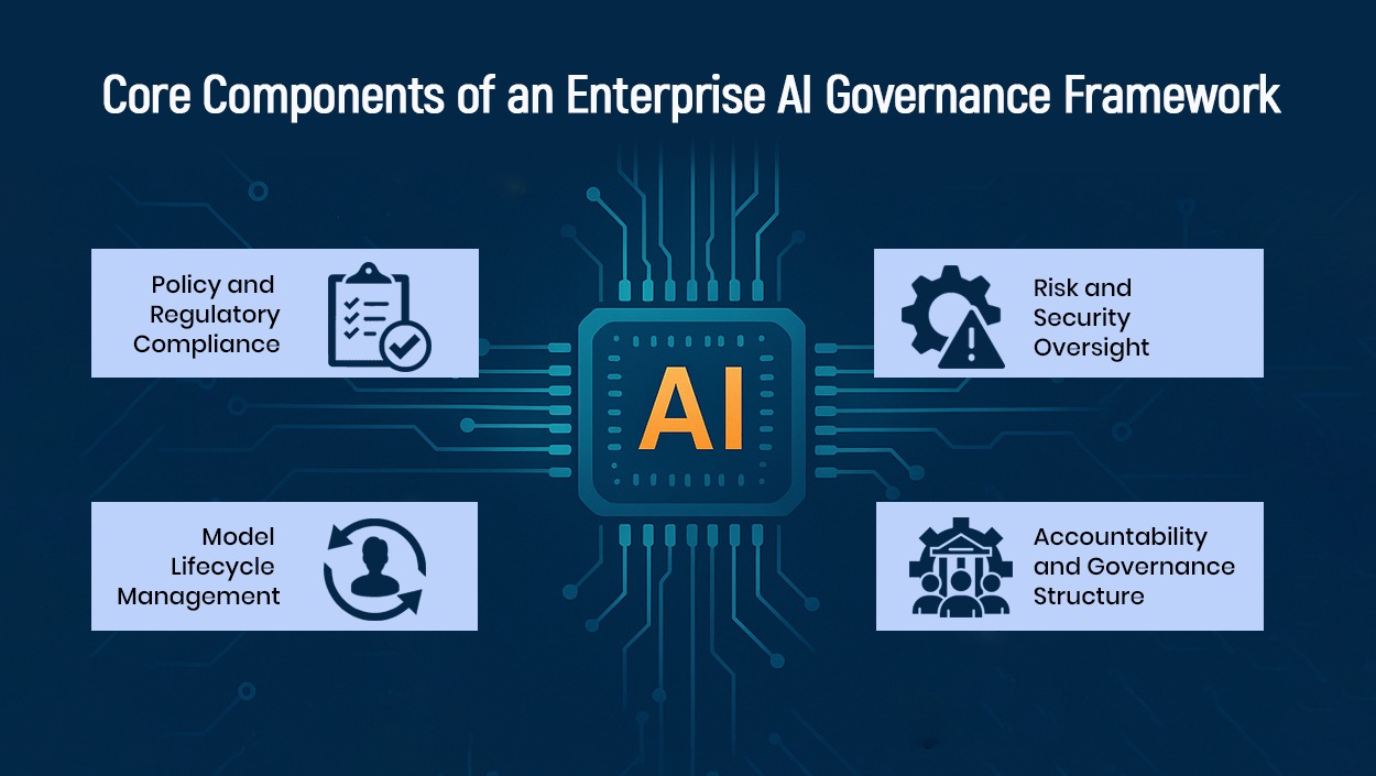 Mentioned below are the core components of an enterprise AI governance framework, which are explained in detail:
