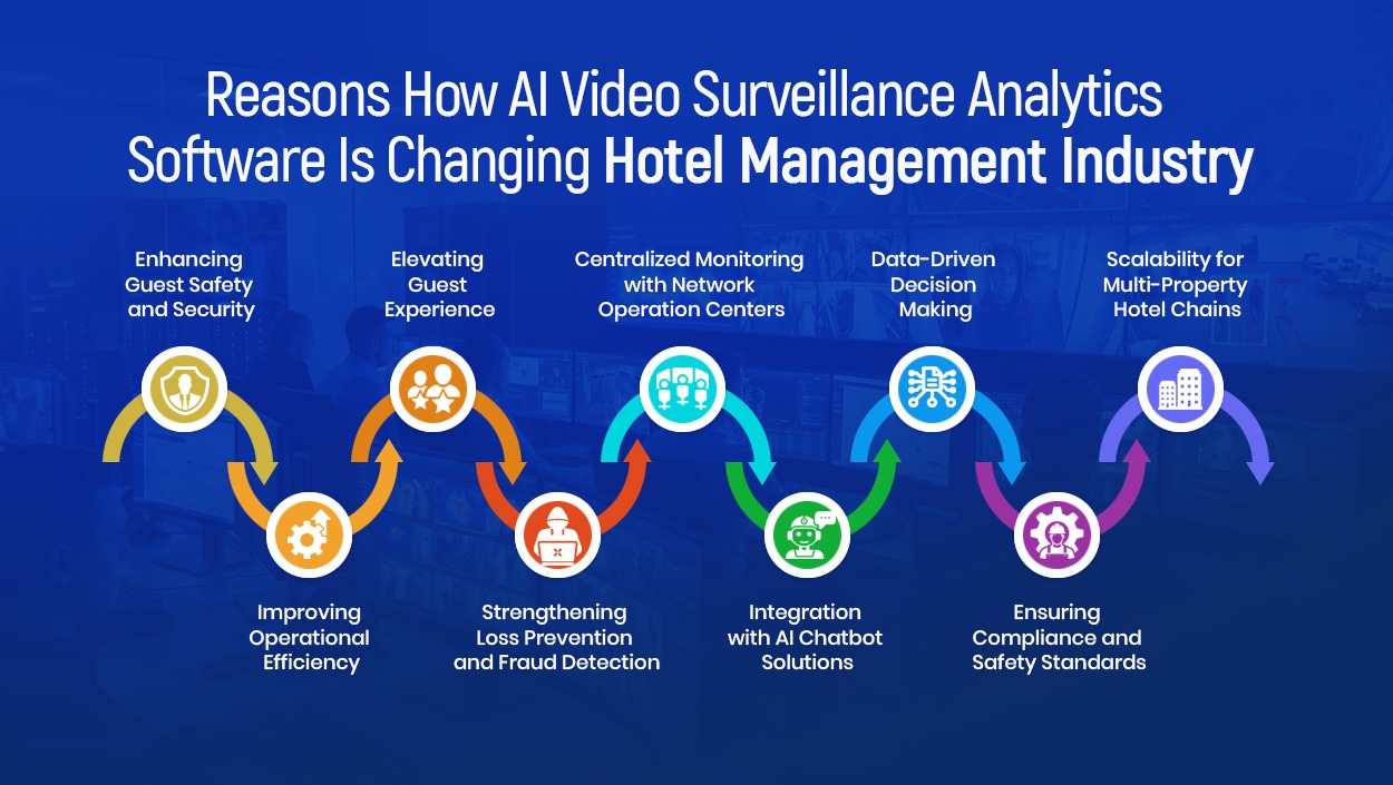 AI-powered video surveillance analytics software has evolved far beyond traditional security systems, becoming a critical strategic asset in modern hotel management. By leveraging advanced video analytics, hotels can enhance safety, streamline operations, and deliver highly personalized guest experiences. Integration with technologies like Network Operation Center and AI chatbot solutions further strengthens decision-making, operational efficiency, and scalability across properties.