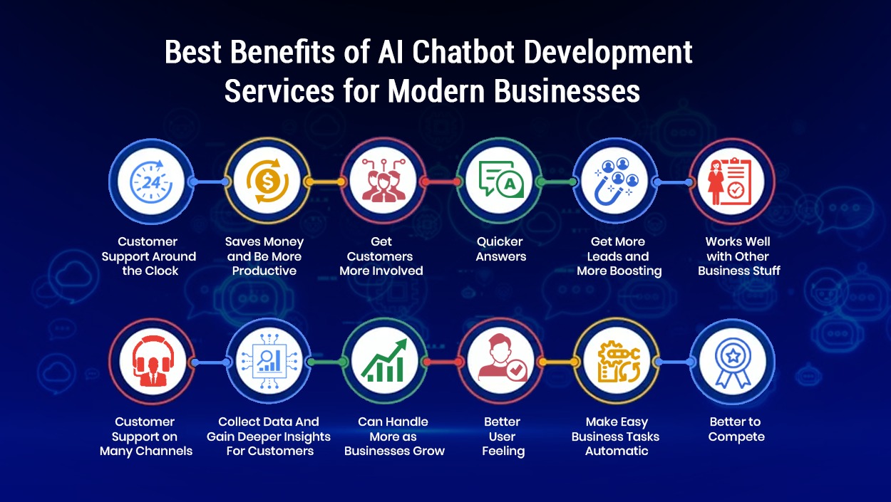 Given below are the top benefits of AI chatbot development services for modern businesses: